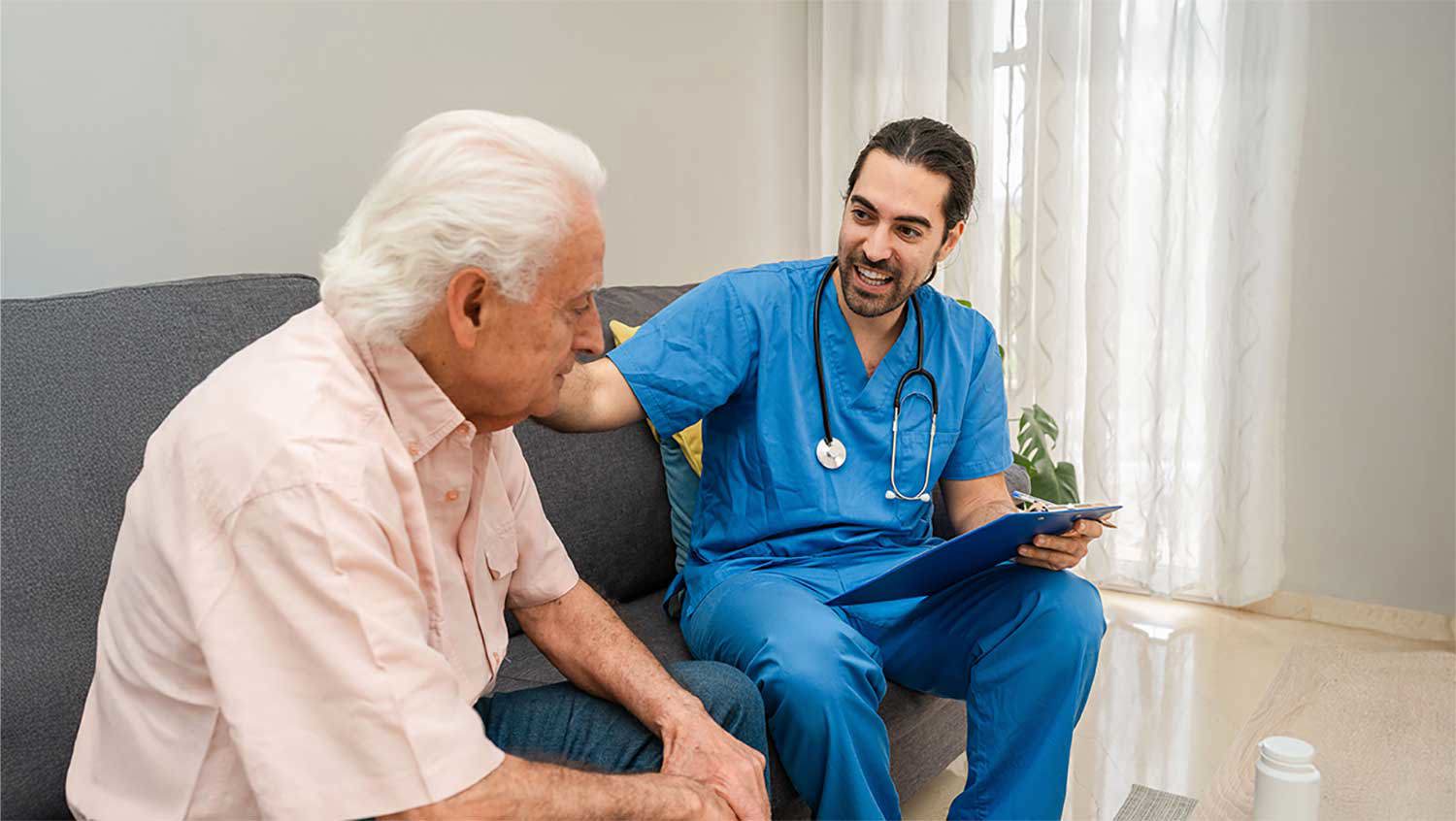 Wenn nur bestimmte Aufgaben schwer fallen oder medizinische Hilfe gebraucht wird, ist mobile Pflege eine gute Lösung. Pflegekräfte kommen regelmäßig ins Haus, zum Beispiel für Hilfe bei der Körperpflege, beim Anziehen, bei der Wundversorgung oder zur Medikamentengabe.